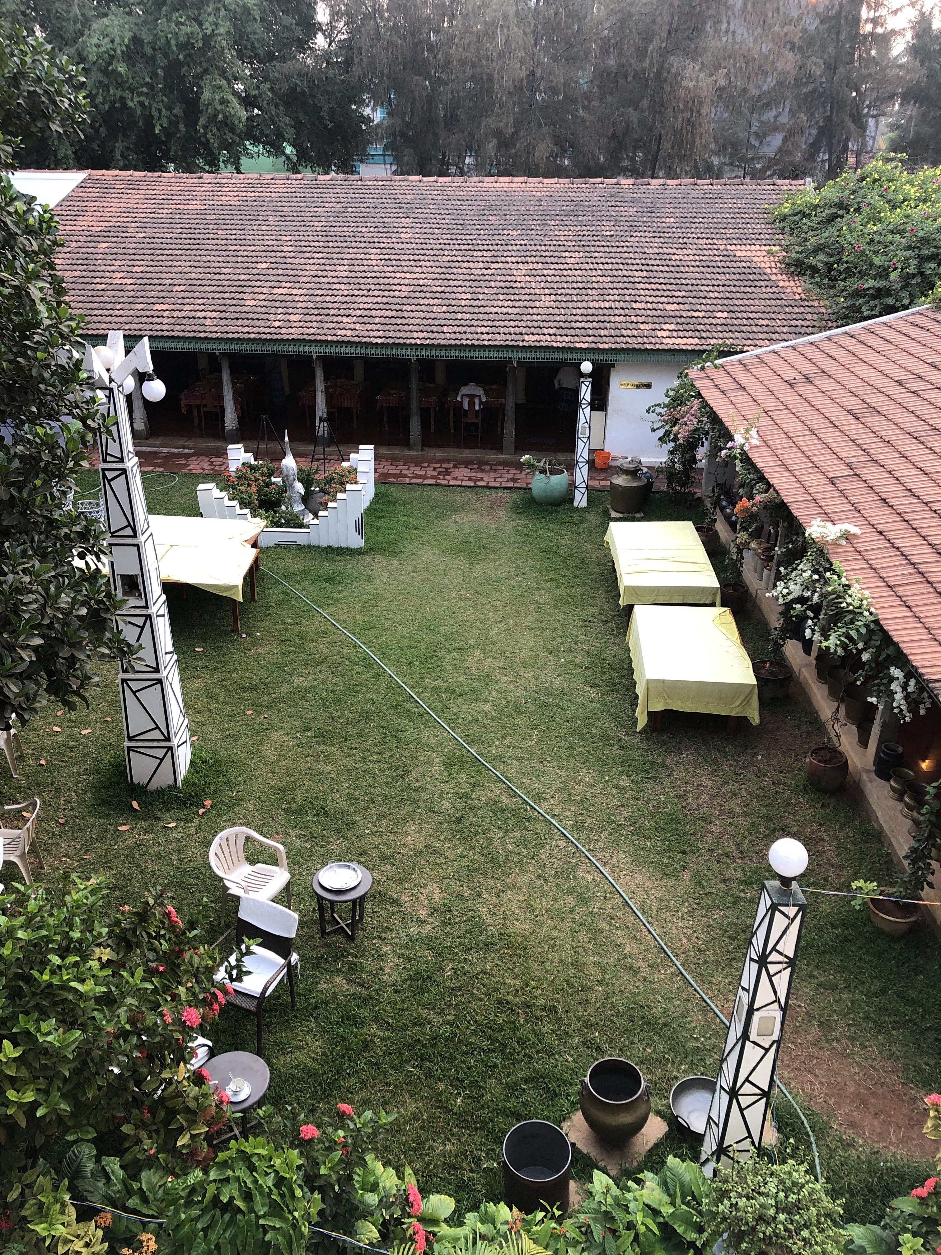 Before dinner we enjoyed an aperitif on our verandah before our Indian fusion meal. Mrs Meyyappan the owner designs all the menus and the food is great. https://www.cntraveller.in/story/restaurant-bangala-karaikudi-chennai-28-top-restaurant-awards-2018-list/#s-cust0