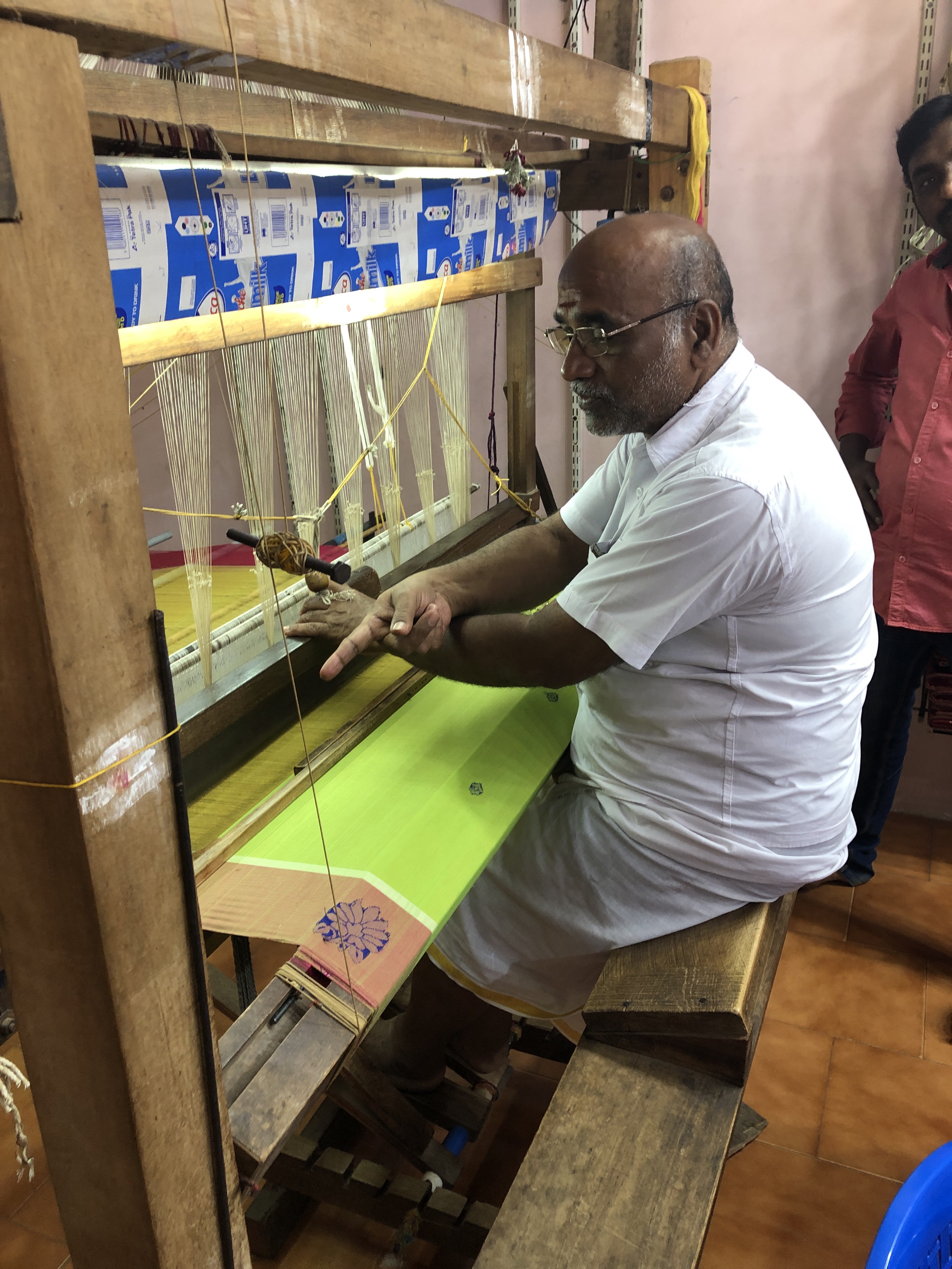 This area was a big trading centre many years ago 1850-1950. Men left Chettinad for a few years to set up trading. They were traders and money lenders. This was how to make money in those days. When they returned they came with teak from Burma, enamel from Indonesia, woven mats and many other goods you see in the houses of the area.